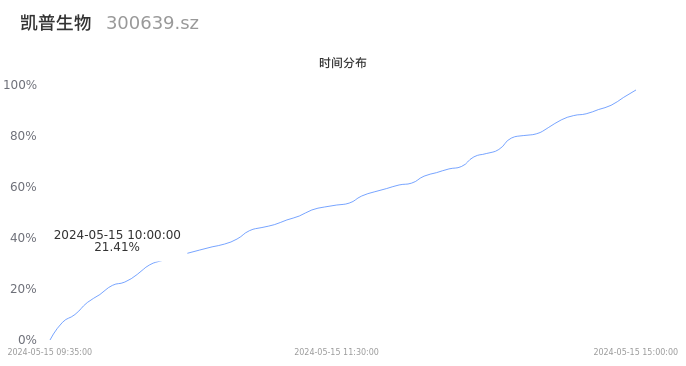 300639凯普生物2024年05月15日成交7.35万手,成交金额4496.05万元,相较昨日放量2640手,换手率1.16%,成交清淡。