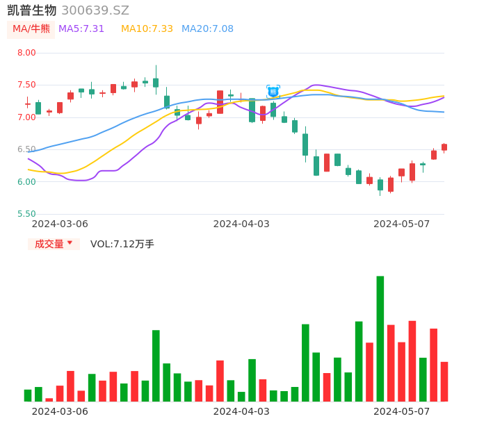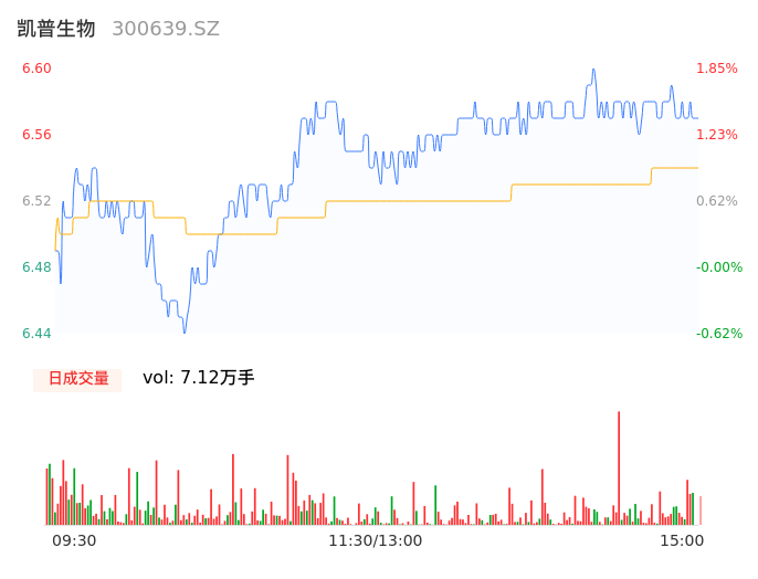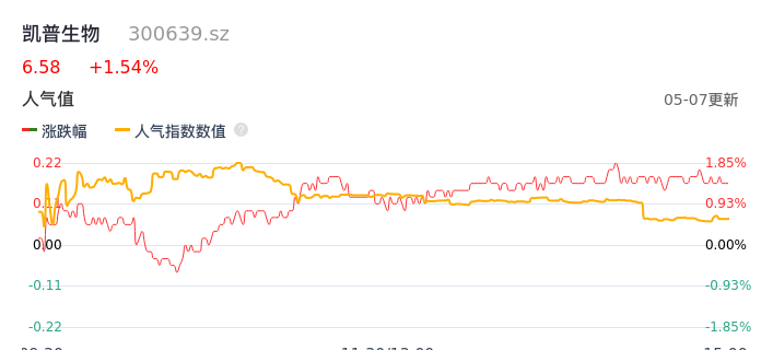 05月07日,凯普生物收报6.58,股价涨幅1.54%,成交金额4655.85万元,换手率1.12%。