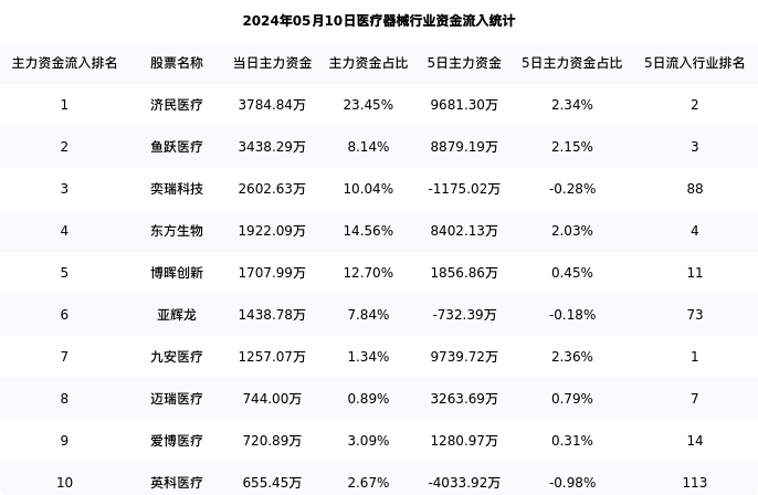 从主力资金流向来看,医疗器械行业今日主力资金流入34.95亿元,在所有申万二级行业中排名:19/131。