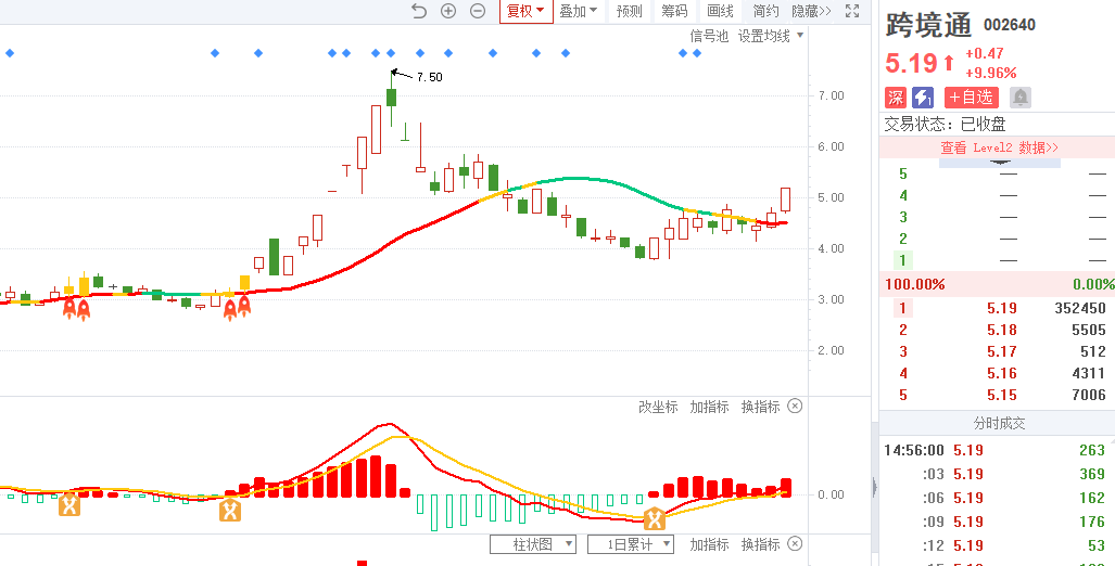 1)跨境通-四维操盘-近期出现火箭信号且底部量柱由绿转红