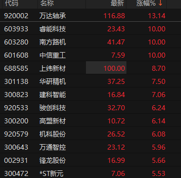 上证报中国证券网讯 10月22日早盘,机器人概念股异动拉升,截至10时25分,睿能科技、南方路机涨停,上纬新材涨超8%,华研精机、高盟新材、万通智控等跟涨。中信重工此前走出3连板。