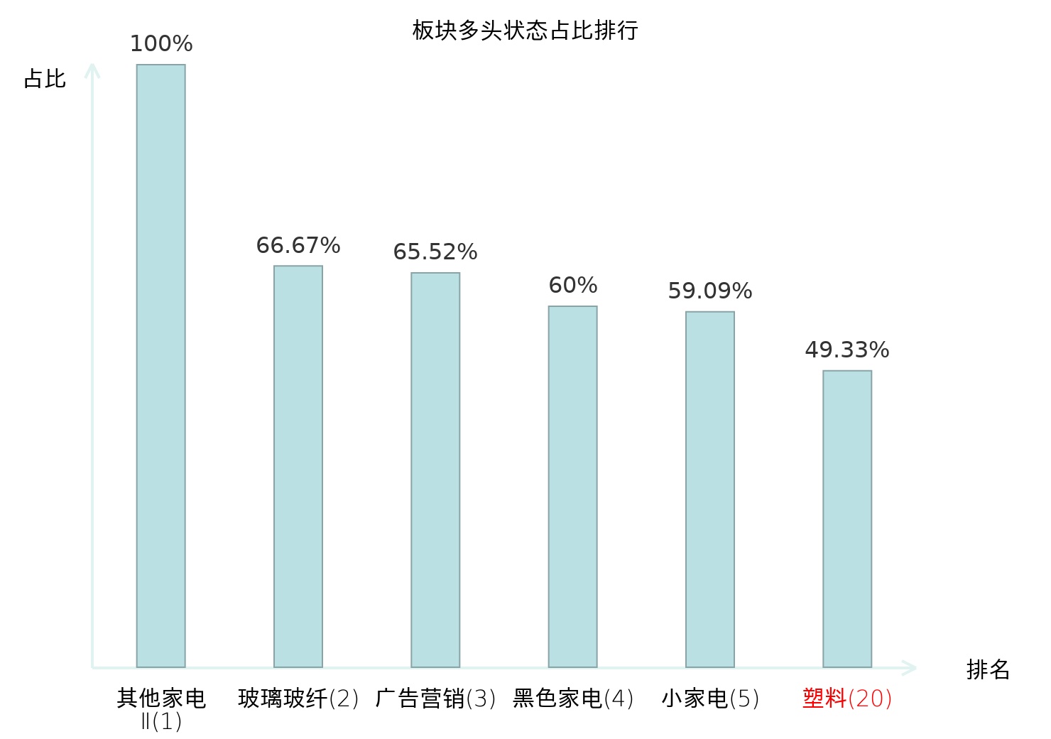 从主力宝信号数据分析,南京聚隆所属的塑料板块中共有37只股票处于主力多头状态,主力多头状态占比在全行业中排名第20位,较昨日下降3位。较高的排名表明主力对于该板块整体看多意愿较强,但此次排名下降可能反映了主力对板块态度的一些调整。全市场所有行业板块中主力多头状态占比排名中,其他家电Ⅱ板块位居第一;航天装备Ⅱ板块名次提升最快,较昨日上升79位。这些变动揭示了不同行业间主力资金动向的趋势,为投资者提供了关于市场情绪和潜在投资机会的重要线索。