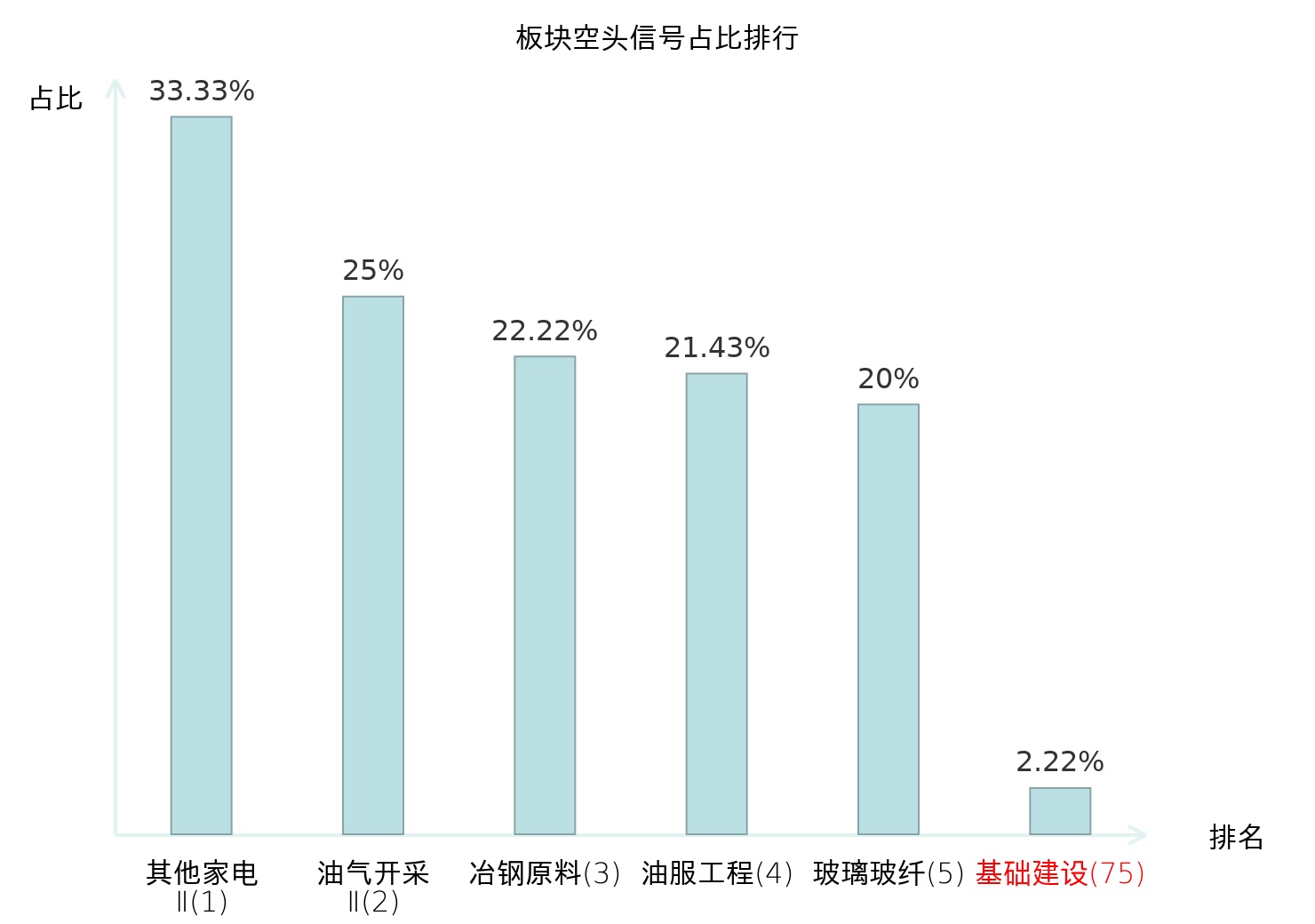 全市场所有行业板块中主力空头信号占比排名中,其他家电Ⅱ板块位居第一。铁路公路板块名次提升最快,较昨日上升113位。
