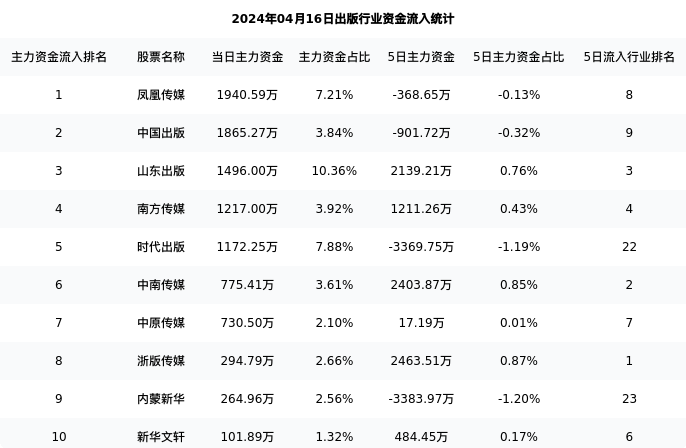 从主力资金流向来看,出版行业今日主力资金流入18.14亿元,在所有申万二级行业中排名:27/131。