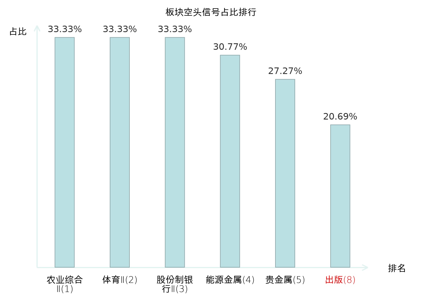 从主力宝信号数据分析,世纪天鸿所属的出版板块中共有6只股票发出主力空头信号,主力空头信号占比在全行业中排名第8位,较昨日上升115位。较高的排名表明主力当日卖出意愿较强,此次排名上升反映了主力对出版板块态度的变化,为投资者提供了市场情绪的重要线索。全市场所有行业板块中,农业综合Ⅱ板块的主力空头信号占比最高,位居第一;出版板块名次提升最快,较昨日上升了115位。这些变动揭示了不同行业间主力资金动向的趋势,有助于投资者理解市场动态和潜在风险。