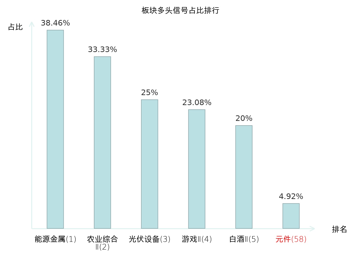 从主力宝信号数据分析,弘信电子所属的元件板块中共3只股票发出主力多头信号,主力多头信号占比在全行业中排名第58位,较昨日上升26位。较高的排名表明主力当日买入意愿较强,此次排名上升反映了主力对元件板块态度的积极变化,为投资者提供了参考。全市场所有行业板块中,能源金属板块的主力多头信号占比最高,位居第一;农业综合Ⅱ板块名次提升最快,较昨日上升126位。这些变动揭示了不同行业间主力资金动向的趋势,为投资者观察市场情绪和潜在投资机会提供了重要线索。