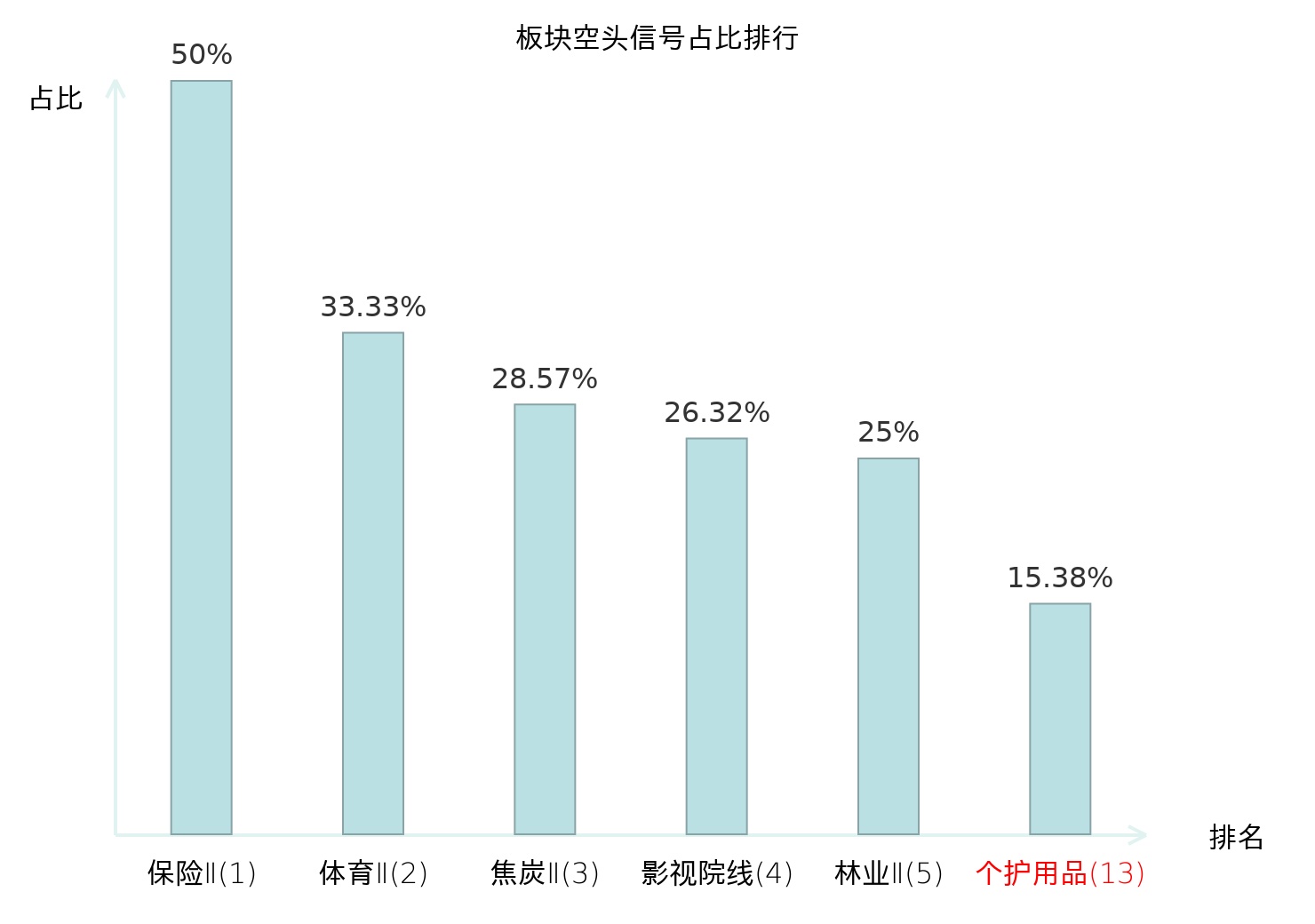 全市场所有行业板块中主力空头信号占比排名中,保险Ⅱ板块位居第一。装修建材板块名次提升最快,较昨日上升118位。