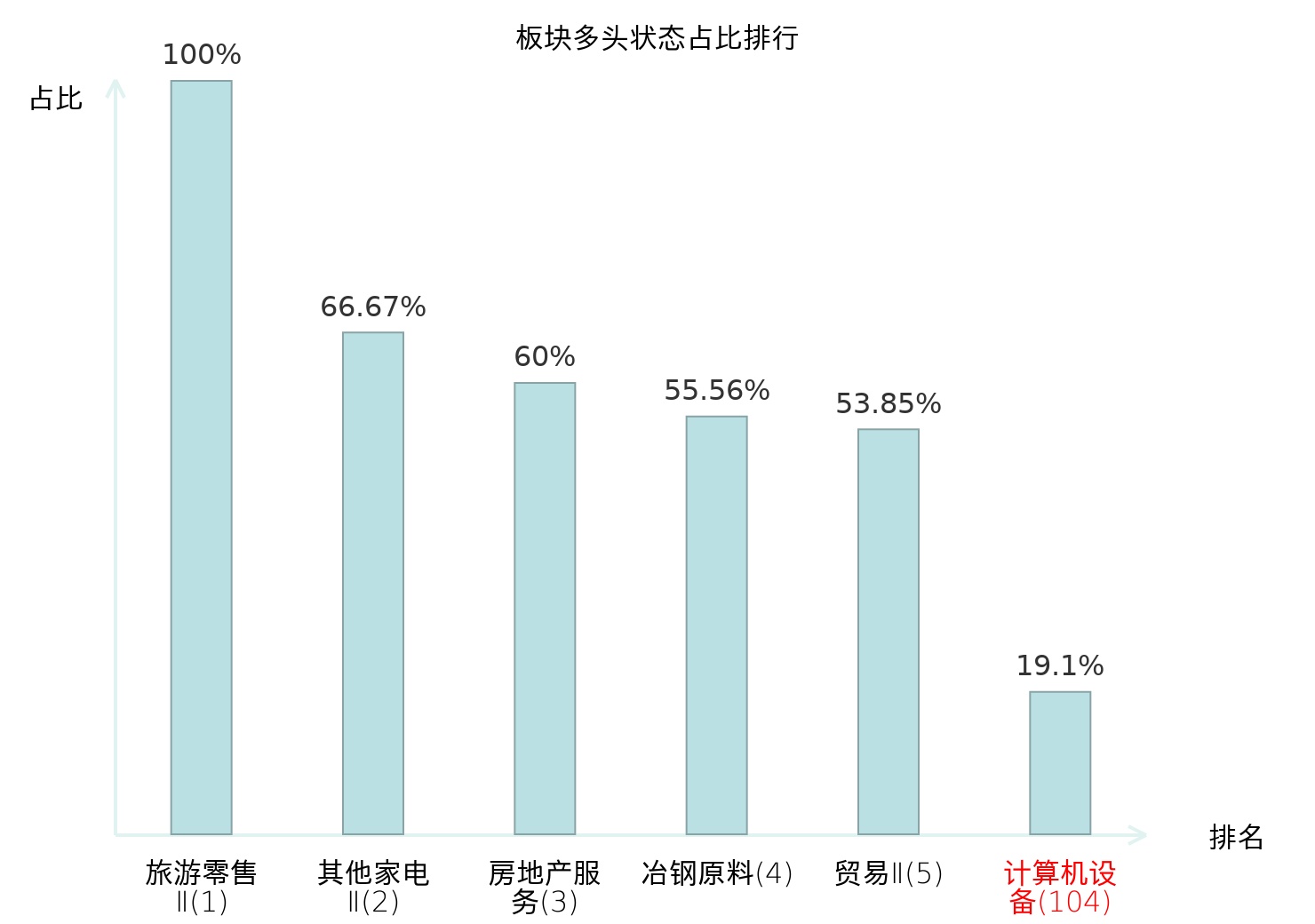 全市场所有行业板块中主力多头状态占比排名中,旅游零售Ⅱ板块位居第一。保险Ⅱ板块名次提升最快,较昨日上升65位。