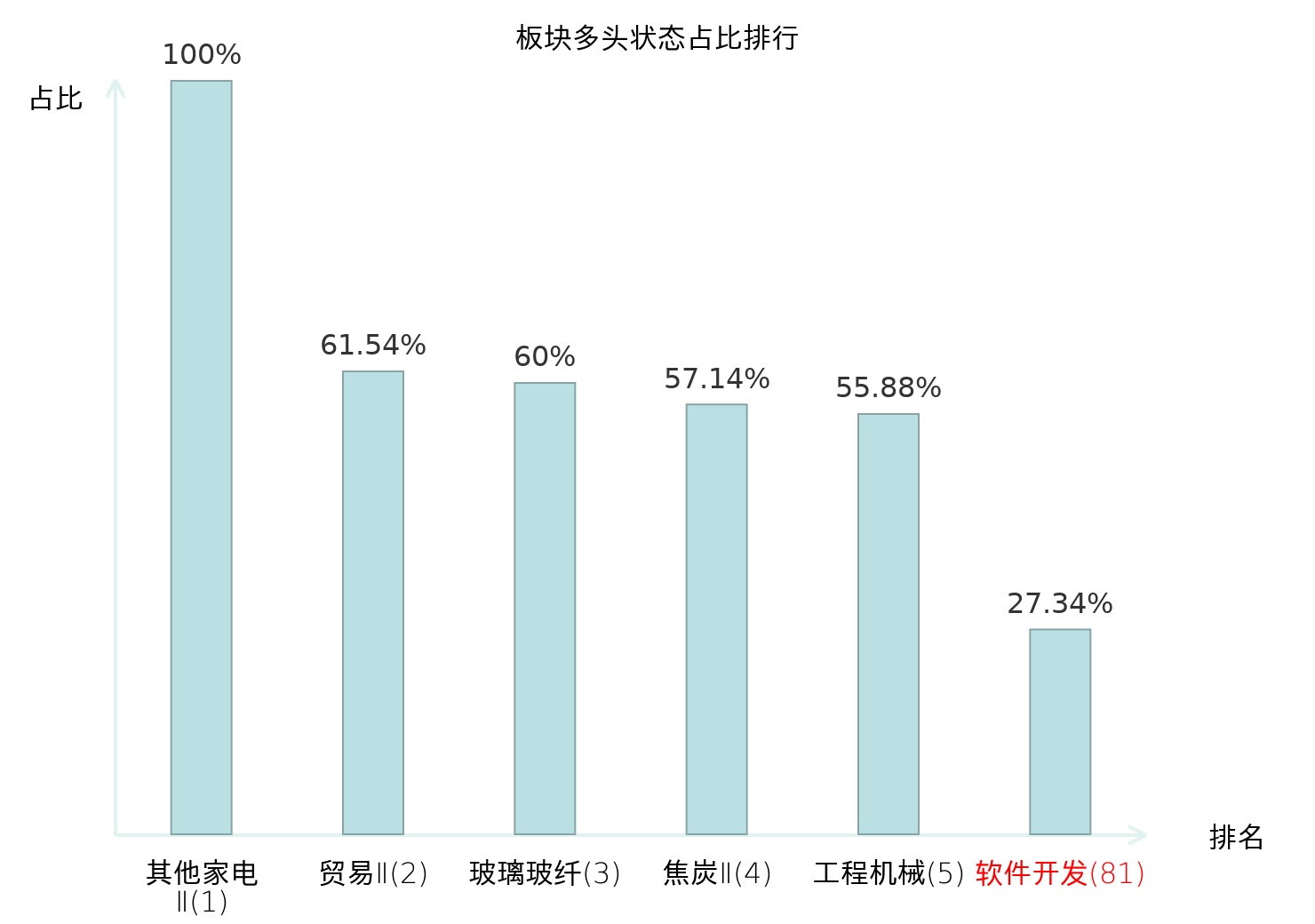 从主力宝信号数据分析,科蓝软件所属的软件开发板块中共有38只股票处于主力多头状态,主力多头状态占比在全行业中排名第81位,较昨日上升11位。较高的排名说明主力对于该板块整体的看多意愿较强,排名上升反映了主力对板块态度的积极调整。全市场所有行业板块中,主力多头状态占比排名中,其他家电Ⅱ板块位居第一;航海装备Ⅱ板块名次提升最快,较昨日上升98位。这些变动揭示了主力资金在不同行业间的偏好变化,为投资者提供了关于市场情绪和潜在投资机会的重要线索。