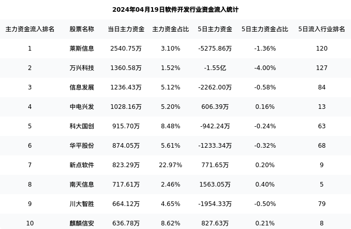 从主力资金流向来看,软件开发行业今日主力资金流入49.21亿元,在所有申万二级行业中排名:121/131。