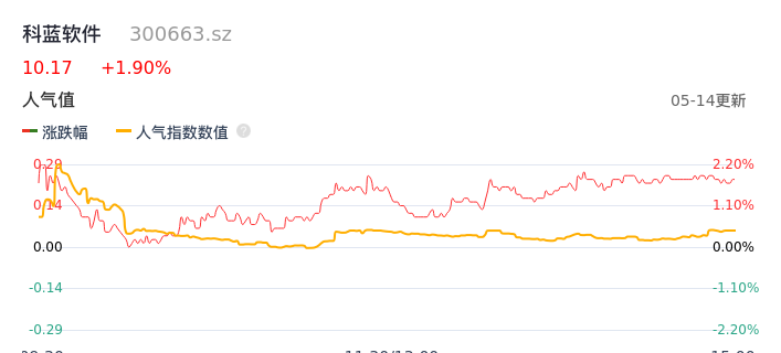 05月14日,科蓝软件收报10.17,股价涨幅1.90%,成交金额7892.68万元,换手率1.88%。