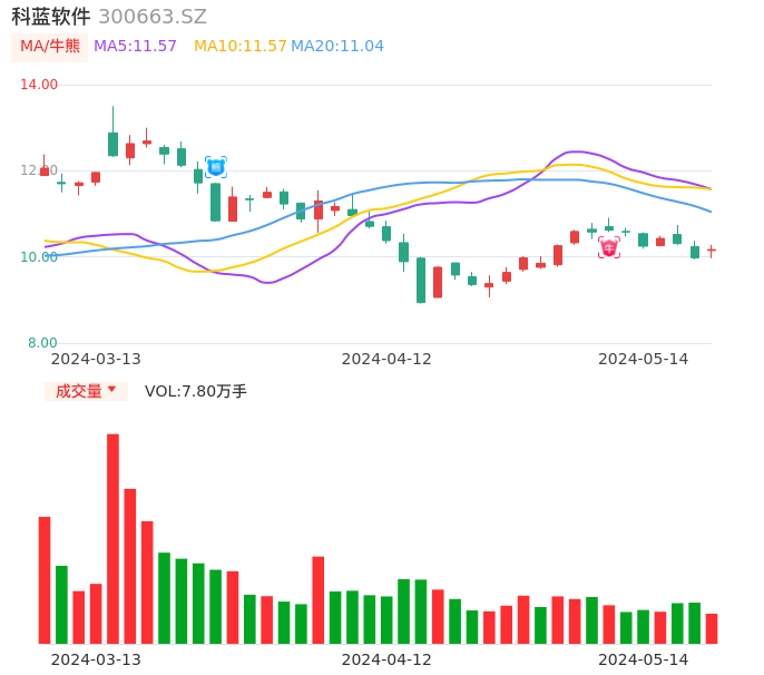 科蓝软件牛熊点指标分析报告-20240514