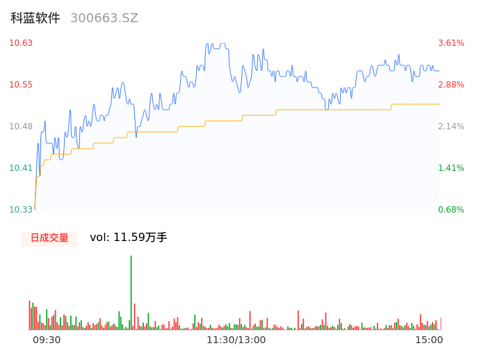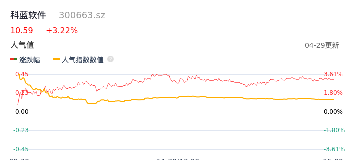 04月29日,科蓝软件收报10.59,股价涨幅3.22%,成交金额1.22亿元,换手率2.79%。