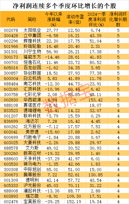 33家公司净利润环比持续增长