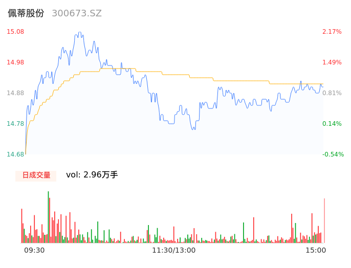 05月17日,佩蒂股份收报14.91,股价涨幅1.02%,成交金额4410.43万元,换手率1.78%。