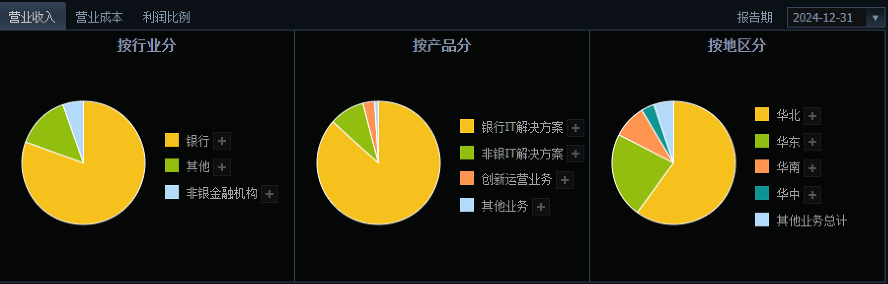 在海外市场上,2024年,公司海外业务新签订单近亿元规模,相关产品收获了中国港澳地区客户积极反馈,多个业务计划在推进落地。公司在海外市场上中标了某跨国银行中国香港和国际分行新一代核心银行系统项目,实现了公司历史上最大的单一软件项目订单签订。该项目落地,使得公司在海外核心业务有了标杆案例,也使得公司海外收入迈入了新的里程碑。我们认为,非银机构业务、创新运营业务和海外业务将成为公司未来发展的重要增长点。