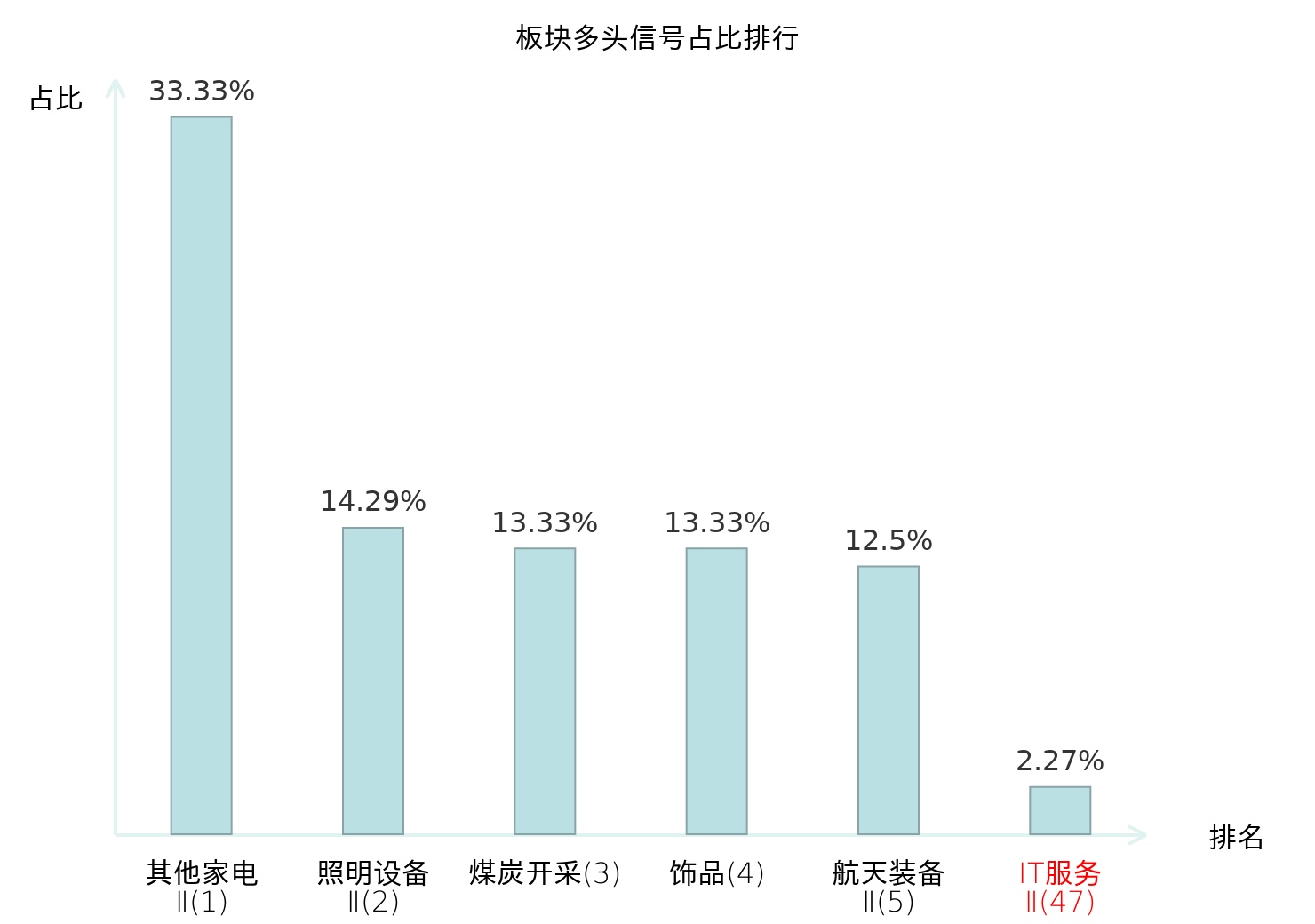 全市场所有行业板块中主力多头信号占比排名中,其他家电Ⅱ板块位居第一。其他家电Ⅱ板块名次提升最快,较昨日上升128位。