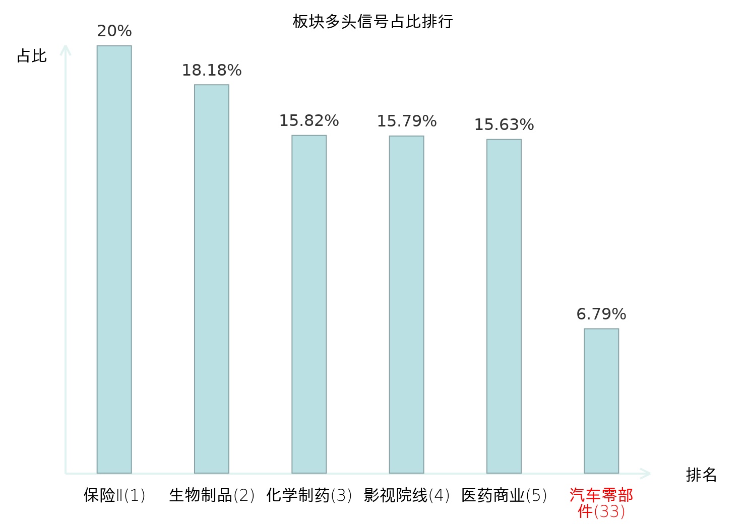 全市场所有行业板块中主力多头信号占比排名中,保险Ⅱ板块位居第一。保险Ⅱ板块名次提升最快,较昨日上升125位。