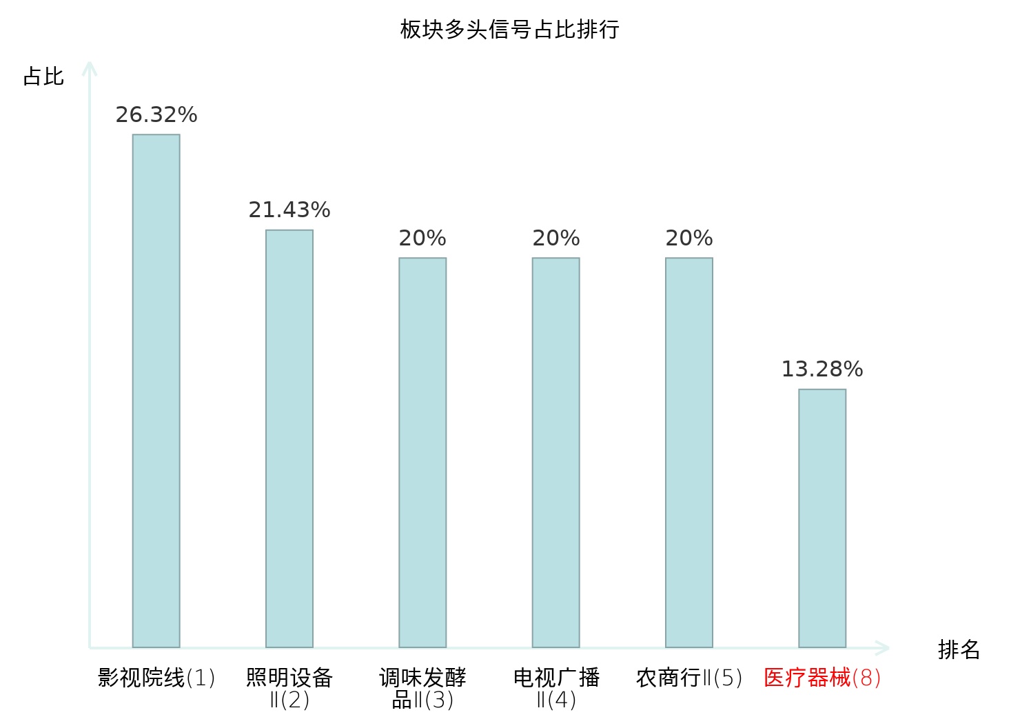 全市场所有行业板块中主力多头信号占比排名中,影视院线板块位居第一。焦炭Ⅱ板块名次提升最快,较昨日上升114位。