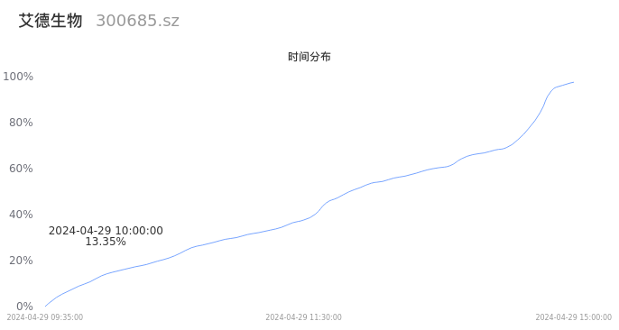 300685艾德生物2024年04月29日成交6.18万手,成交金额1.35亿元,相较昨日放量1.40万手,换手率1.57%,成交清淡。