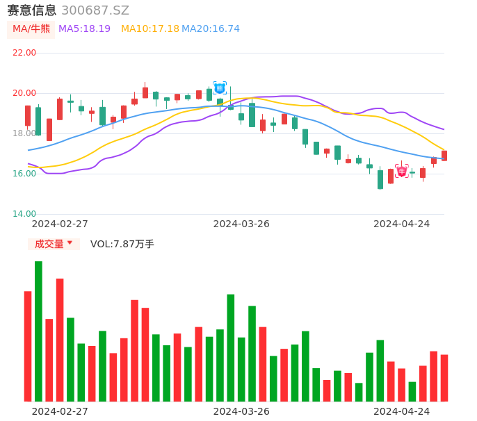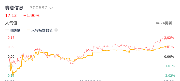 04月24日,赛意信息收报17.13,股价涨幅1.90%,成交金额1.33亿元,换手率2.44%。