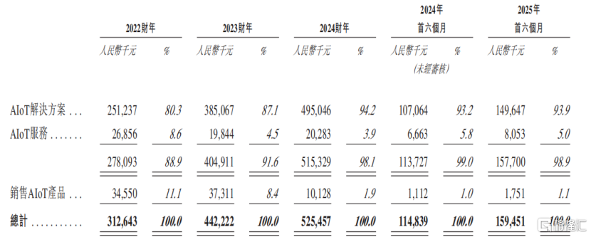 1、AIoT解决方案,向客户提供跨行业及行业特定的AIoT解决方案;2025年上半年这部分收入的占比为93.9%;