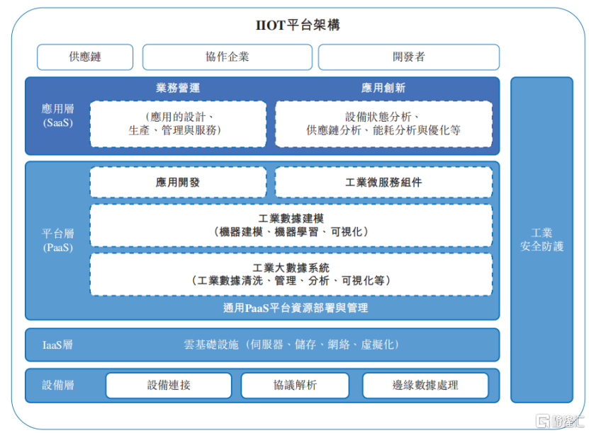 设备层透过智能设备与边缘设备进行实时数据采集与初步处理。IaaS层提供基础的计算与网络资源;PaaS层支持工业应用的开发与数据处理;SaaS层则提供灵活的云端工业解决方案。
