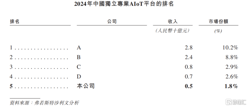 2024年中国独立专业AIoT平台的排名,来源:招股书