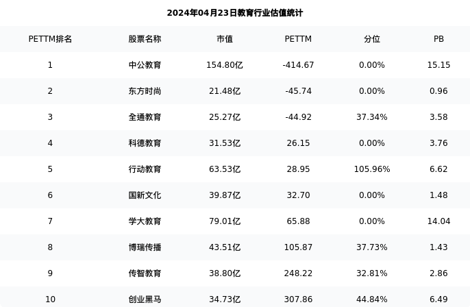 创业黑马最新报告期数据为一季度,下表汇总了教育行业内市值靠前的公司一季度主要经营数据