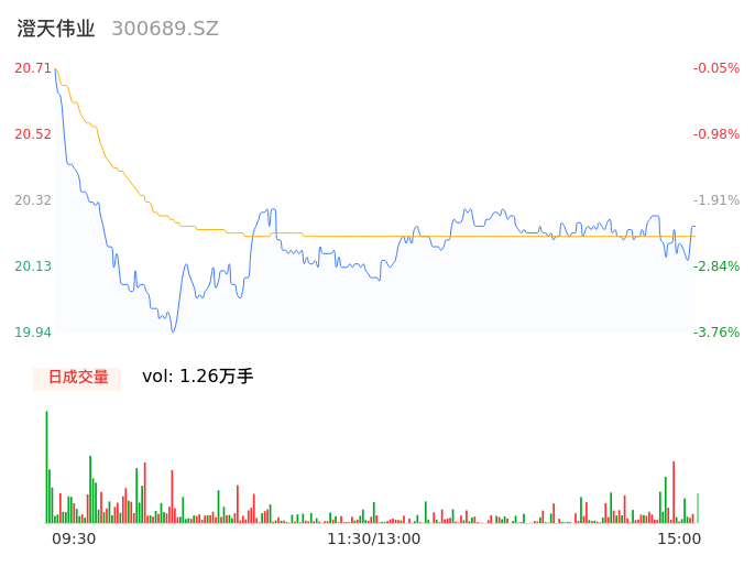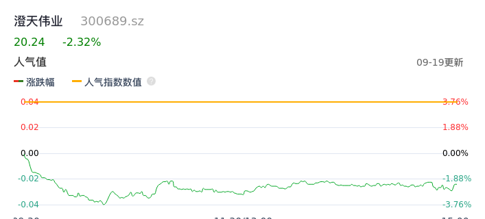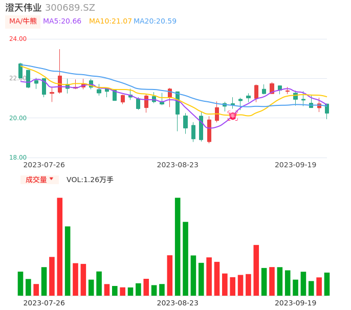 09月19日,澄天伟业收报20.24,股价涨幅-2.32%,成交金额2545.94万元,换手率1.26%。