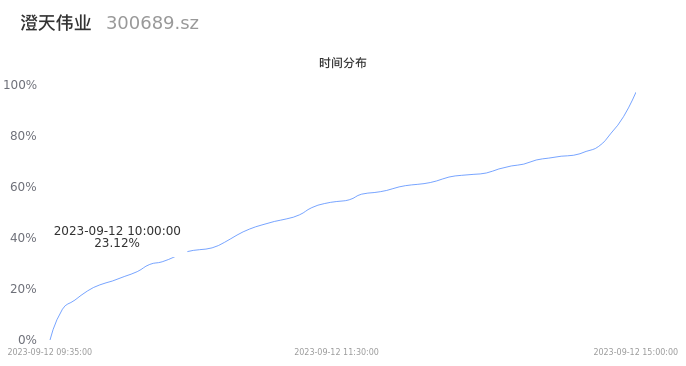 根据成交分布分析,该股票当天缩量成交,成交清淡。时间上看,早盘前半小时成交量占据当天总成交量的23.12%;价格上看,成交呈现中间峰。成交分布分析主要研究股票成交的分布特性,不具有预测功能,请知悉。