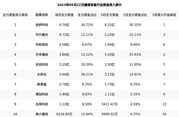 从主力资金流向来看,通信设备行业今日主力资金流入190.11亿元,在所有申万二级行业中排名:110/131。