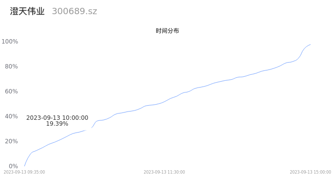 300689澄天伟业2023年09月13日成交1.03万手,成交金额2151.58万元,相较昨日缩量3070手,换手率1.03%,成交清淡。