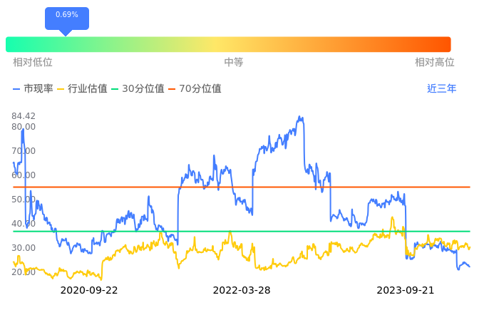 2023年09月21日,澄天伟业上涨0.05%收于20.06,今日成交金额1908.97万元。下文将从市盈率PETTM、市净率PB、市现率3个角度去分析公司估值情况。