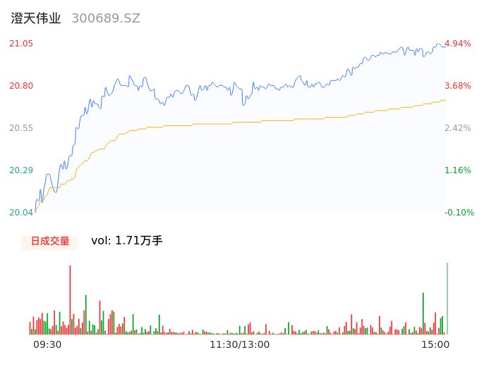 09月22日,澄天伟业收报21.01,股价涨幅4.74%,成交金额3537.23万元,换手率1.71%。