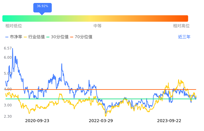澄天伟业当前市净率PB为3.54,在所属的通信设备中,市净率PB排42,前五名分别为亨通光电市净率1.42、中天科技市净率1.51、辉煌科技市净率1.58、高鸿股份市净率1.63、长江通信市净率1.70。澄天伟业当前市净率PB为3.54,超过近3年36.92%的历史数据。