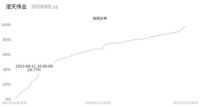 300689澄天伟业2023年09月21日成交9435手,成交金额1908.97万元,相较昨日放量1920手,换手率0.95%,成交清淡。