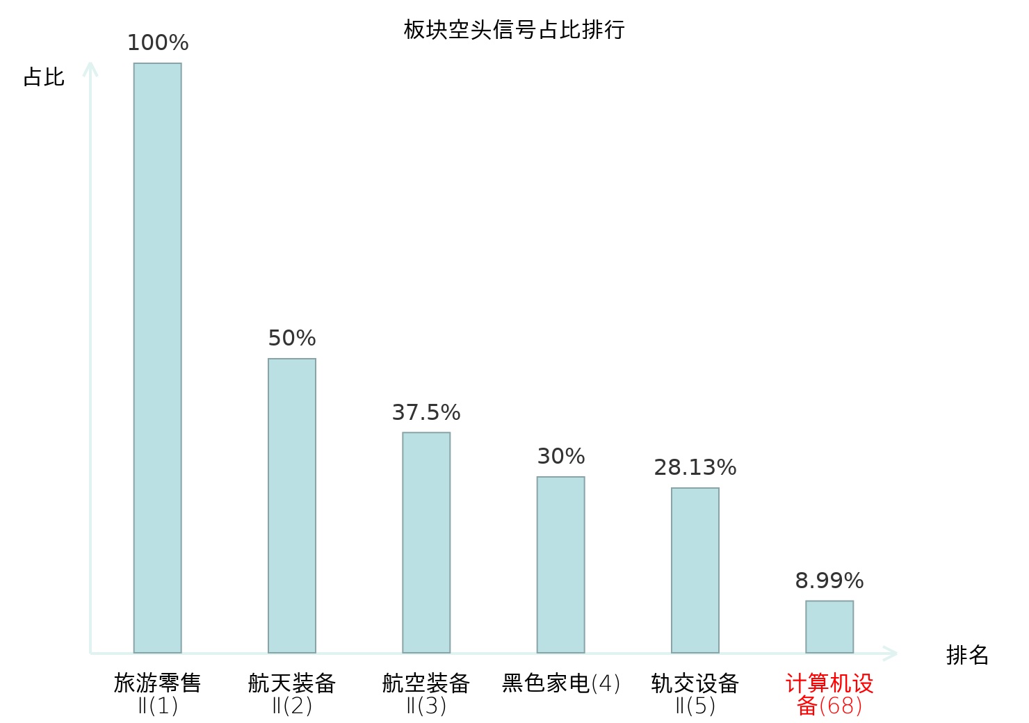 全市场所有行业板块中主力空头信号占比排名中,旅游零售Ⅱ板块位居第一。专业工程板块名次提升最快,较昨日上升116位。