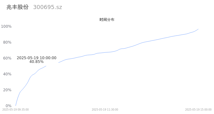 300695兆丰股份2025年05月19日成交3.97万手,成交金额3.81亿,相较昨日缩量2.33万手,换手率5.59%,成交清淡。