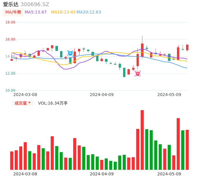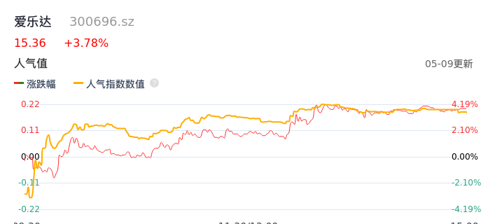 05月09日,爱乐达收报15.36,股价涨幅3.78%,成交金额2.47亿元,换手率8.78%。