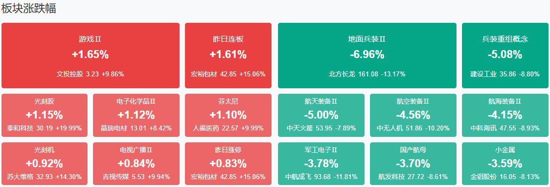 板块方面,影视、光刻机、半导体、贵金属等板块涨幅居前,商业航天、证券、乳业、有色金属等板块跌幅居前。截至收盘,沪指跌0.96%,深成指跌0.63%,创业板指跌0.00%。