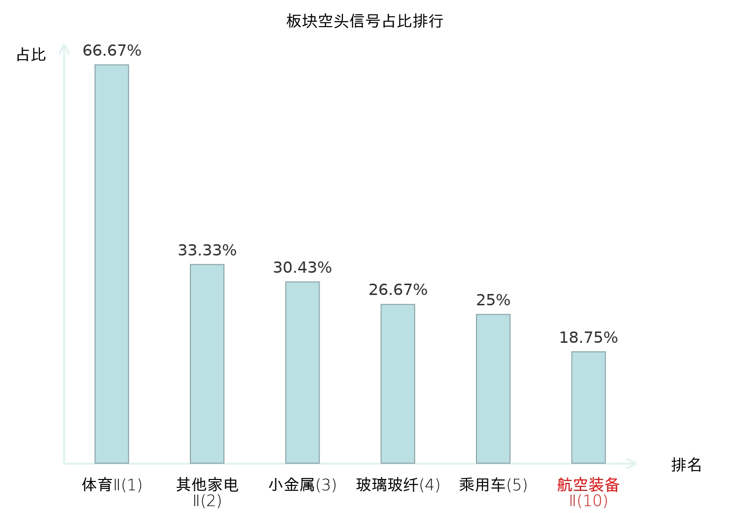 全市场所有行业板块中主力空头信号占比排名中,体育Ⅱ板块位居第一。光伏设备板块名次提升最快,较昨日上升113位。