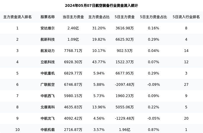 从主力资金流向来看,航空装备行业今日主力资金流入66.65亿元,在所有申万二级行业中排名:20/131。