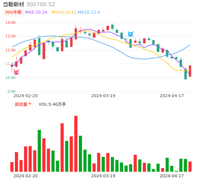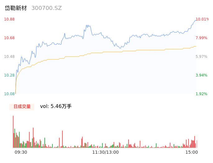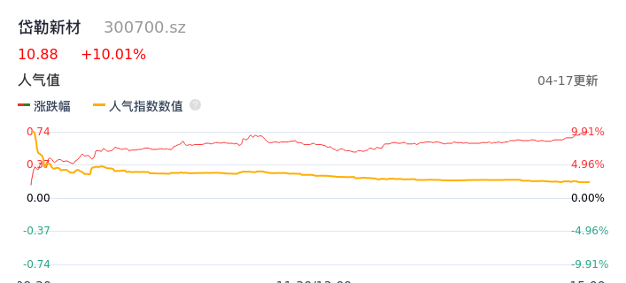 04月17日,岱勒新材收报10.88,股价涨幅10.01%,成交金额5786.99万元,换手率2.89%。