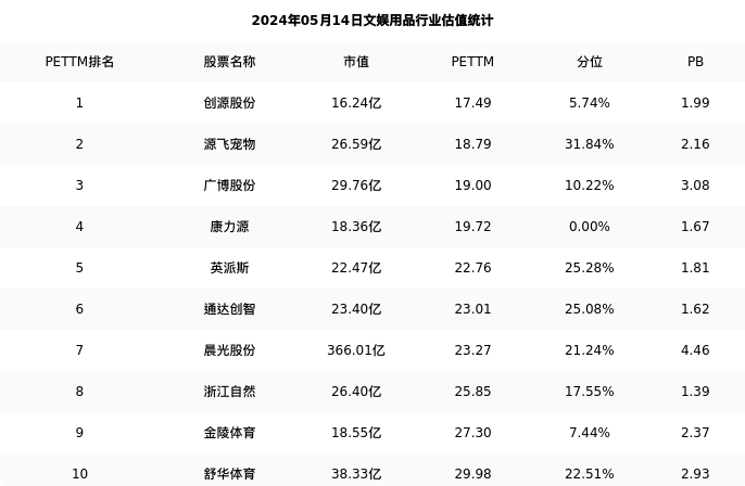 从估值角度看:创源股份最新市盈率PETTM为17.49,在行业内排名1/22,处于5.74分位。
