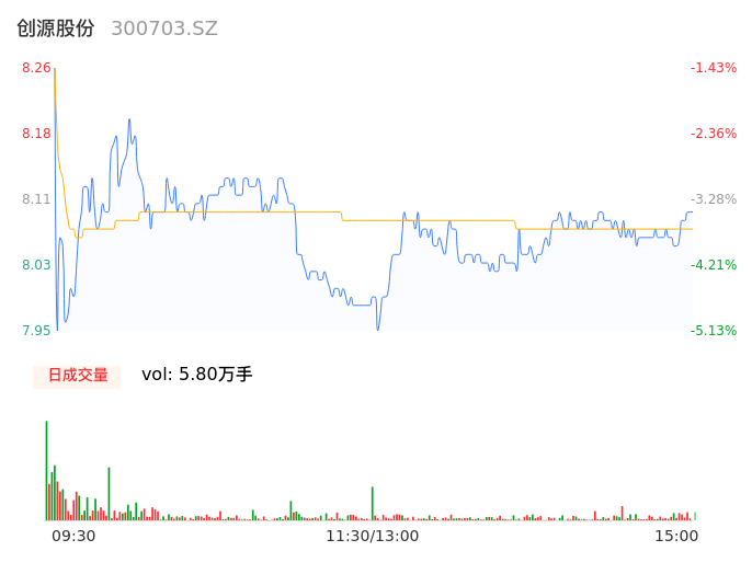 04月19日,创源股份收报8.06,股价涨幅-3.82%,成交金额4679.38万元,换手率3.49%。