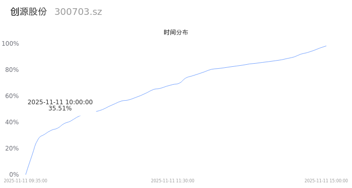 300703创源股份2025年11月11日成交7.49万手,成交金额2.03亿,相较昨日缩量3.00万手,换手率4.42%,成交清淡。