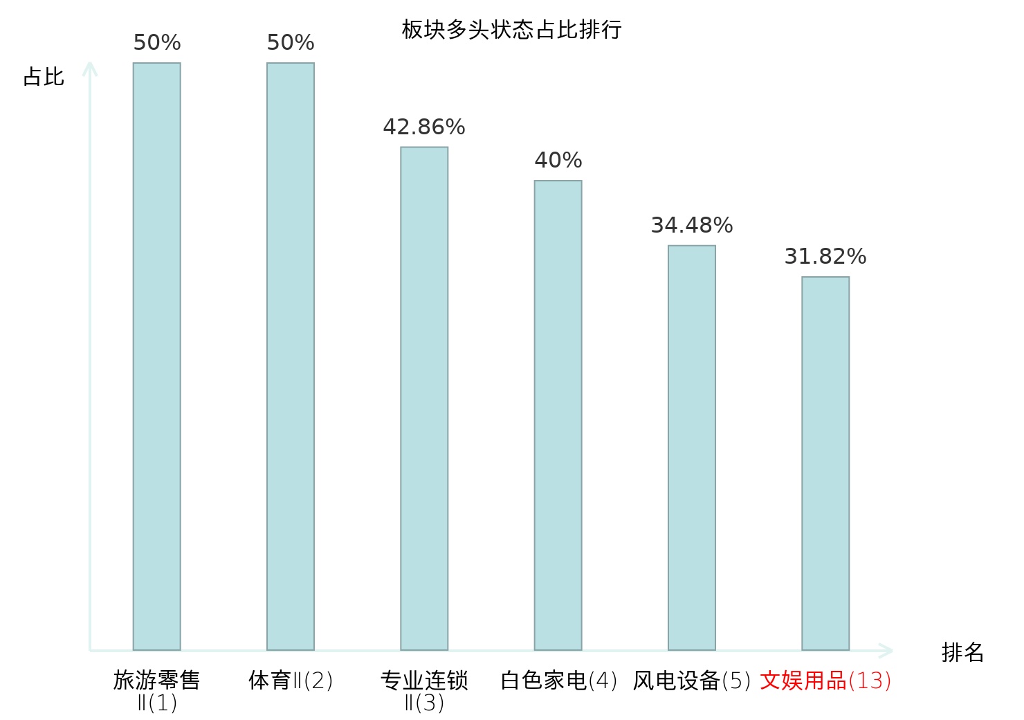 全市场所有行业板块中主力多头状态占比排名中,旅游零售Ⅱ板块位居第一。能源金属板块名次提升最快,较昨日上升50位。
