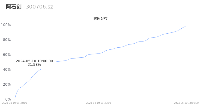 根据成交分布分析,该股票当天放量成交,成交清淡。时间上看,早盘前半小时成交量占据当天总成交量的31.58%;价格上看,成交呈现左偏峰。成交分布分析主要研究股票成交的分布特性,不具有预测功能,请知悉。