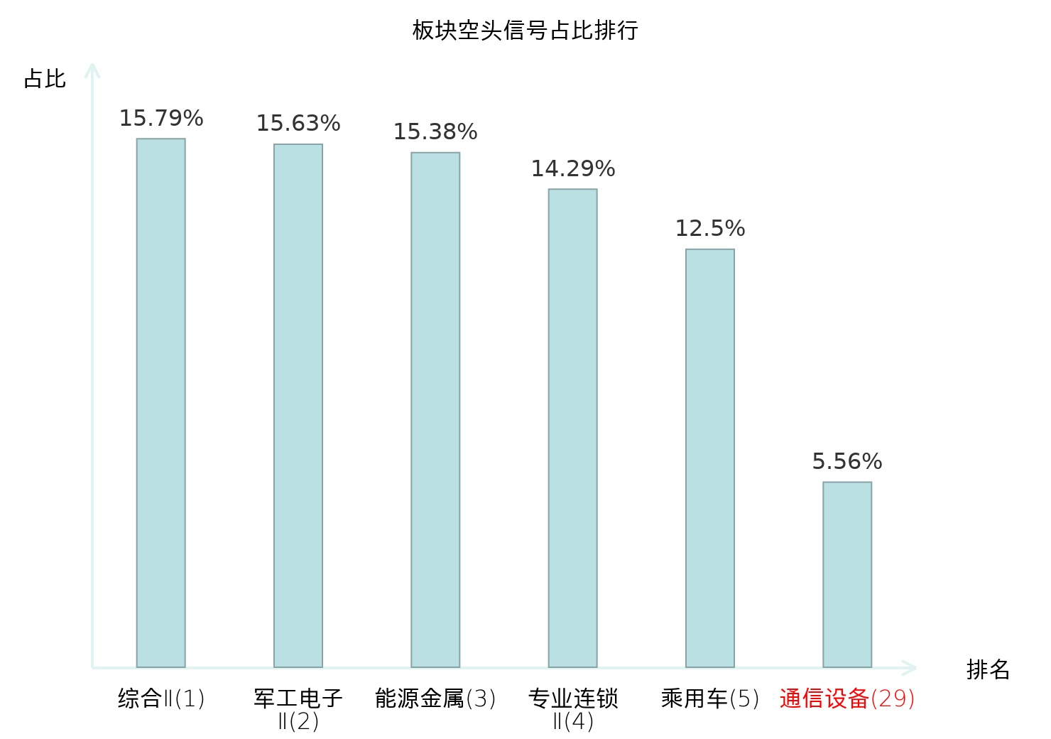 全市场所有行业板块中主力空头信号占比排名中,综合Ⅱ板块位居第一。证券Ⅱ板块名次提升最快,较昨日上升116位。